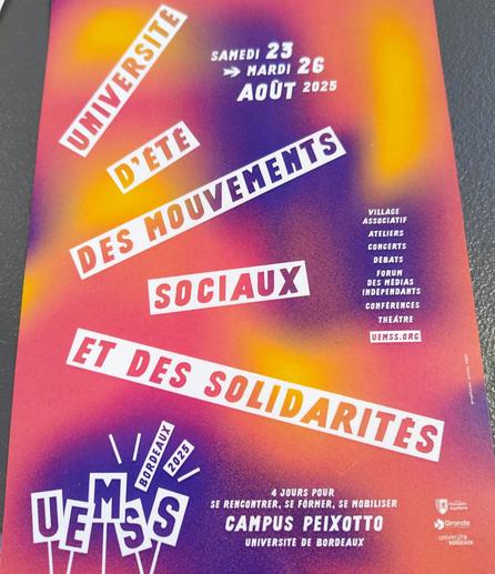 Plus de 2000 personnes du monde entier sont attendues sur le campus de #Bordeaux pour l'#uemss, un évènement engagé et festif. https://rue89bordeaux.com/2025/08/23-26-aout-universite-ete-mouvements-sociaux-campus-peixotto/