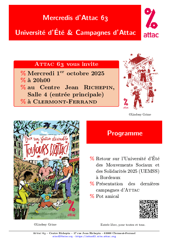 1 octobre 2025, 20:00:00 CEST - GMT+2 - Maison des Associations Jean Richepin, Clermont-Ferrand, Puy-de-Dôme, Francehttps://mobilizon.fr/events/c94d6060-9e95-4f53-9c35-d5e530bf5c9d