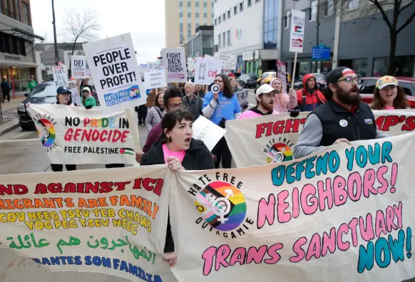 Appleton workers rally for May Day: "Trans rights are workers' rights!"