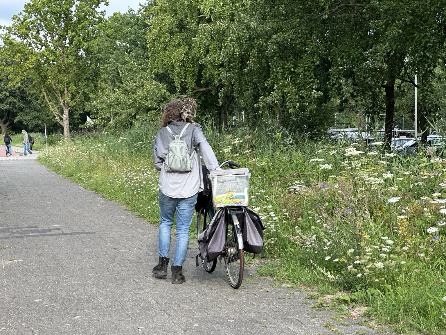 Vrouw met een uil op haar schouder. 🤷♂️ #amsterdam #uil #owl #sloterdijk