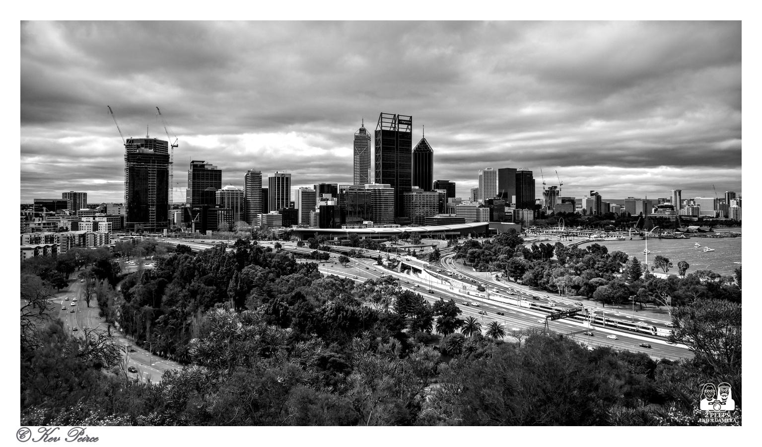 Black and white drama framing the heart of Perth.