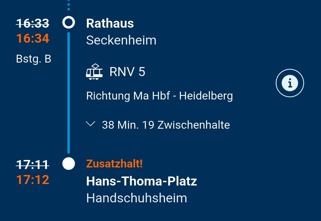 ÖPNV | RNV: Seit wann ist der Hans-Thoma-Platz auf der Linie RNV5 nur noch ein Zusatzhalt?
