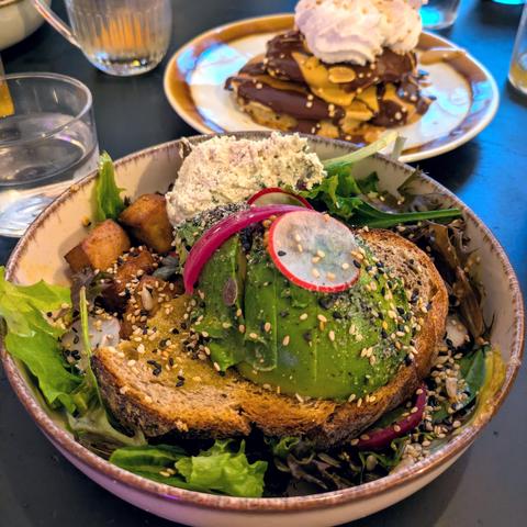 Ez badirudi ere, gehienetan gosaldu, bazkaldu eta afaldu etxean egiten dut. Adibidez, babarrun platerkada hau barazkiekin egosia, txorizo beganoarekin eta odolki beganoarekin lagunduta. Postrea, Bilboko Patxes Rollen erositako zinnamon roll begano txokolatedun honen zati bat (riquisímo. Hiru barietate begano dituzte: klasikoa banillazko glaseatuarekin, beste bat pistatxozko kremarekin, eta hau txokolatezkoa). Txorizoa eta odolkia Viva la Vida Veganamente Bilboko denda beganoan erosi dira (denetarik dute). Dena oso gozua.