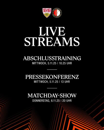 Abschlusstraining, Pressekonferenz und Matchday-Show: Rund um das UEFA Europa League-Heimspiel gegen Feyenoord Rotterdam bietet der VfB mehrere Livestreams an.