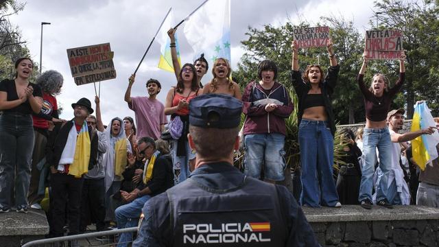El agitador ultra Vito Quiles celebra rodeado de banderas franquistas y entre protestas un acto sin autorización en la Universidad de La Laguna https://www.eldiario.es/canariasahora/tenerifeahora/sociedad/agitador-ultra-vito-quiles-protestas-acto-universidad-la-laguna-este-viernes_1_12769262.html EFE / Canarias Ahora #VitoQuiles #Canarias