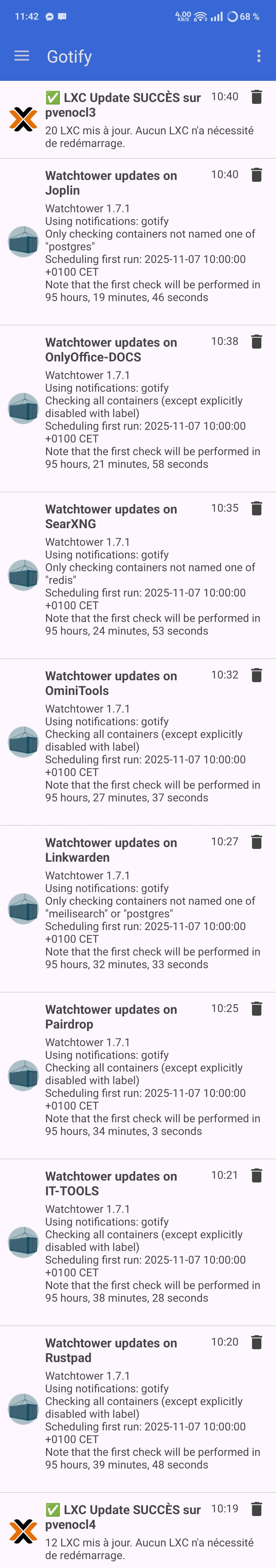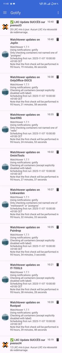 Si comme moi, vous avez poussé l'isolation à l'extrême en mettant chaque service dans son LXC Docker, vous avez sûrement fini par vous retrouver avec une Watchtower à déployer pour chacun 😅
