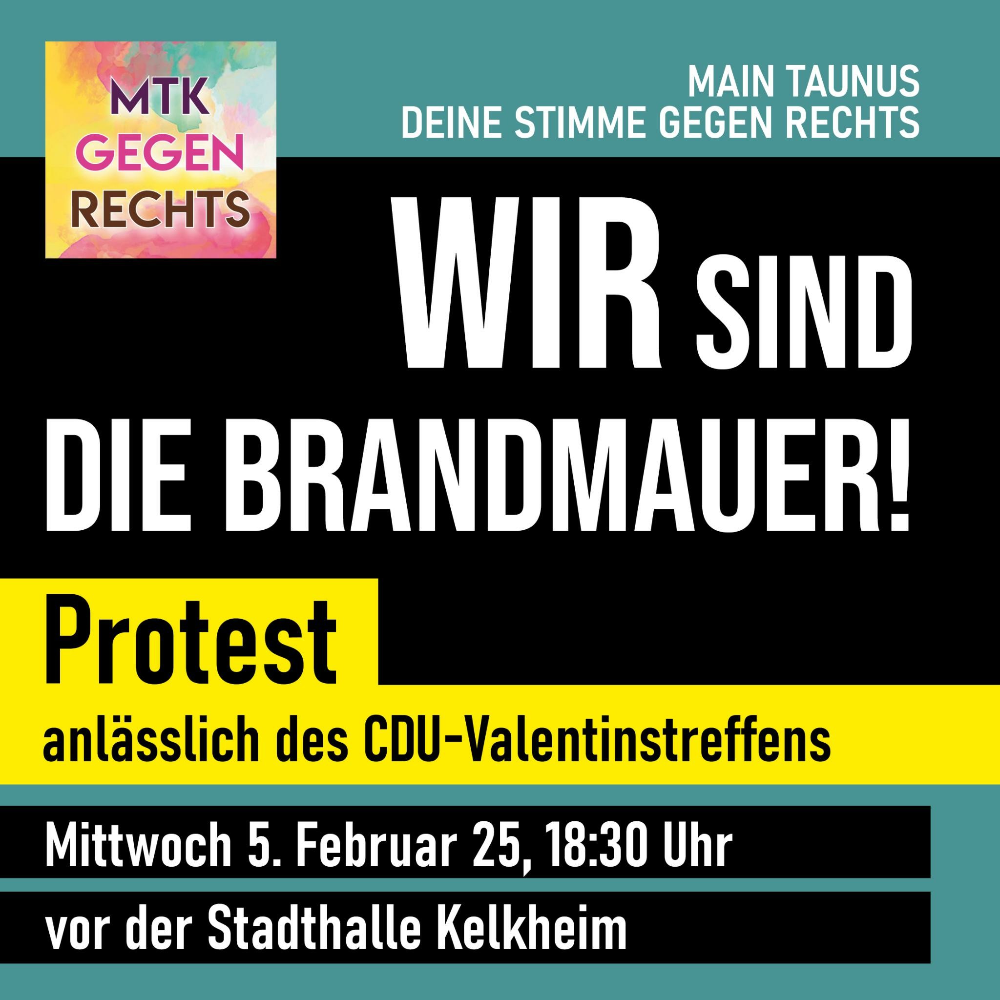 Wir sind die #Brandmauer #Kelkheim, #MTK #MainTaunusKreis. Protest vor dem CDU-Valentinstreffen (u.a. mit Carsten Linnemann und Boris Rhein) . Mittwoch, 5. Februar, 18:30 Stadthalle Kelkheim (Gagernring 1) #Wahlkampfgegenrechts #MTKgegenRechts #WirsindieBrandmauer #DemosGegenRechts
