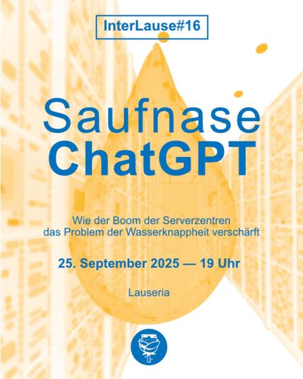 Dank des Hypes der ›Künstlichen Intelligenz‹ schießen derzeit mancherorts Serverzentren wie Pilze aus dem Boden. Mit Bau, Betrieb und Entsorgung dieser Anlagen gehen ein extensiver Mineralienabbau, ein Flächenfraß und ein hoher Energiebedarf einher – aber vor allem auch ein massiver Verbrauch an H₂O.