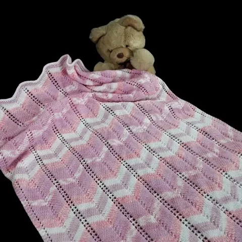 Hand knitted baby pram blanket - pinks and white Chevron Afghan - pram cover etsy.com/uk/listing/682184662