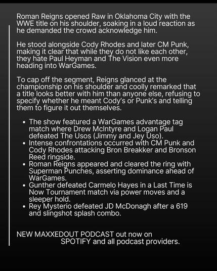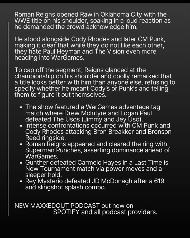 Roman Reigns opened RAW with the WWE title on his shoulder and instantly shifted the whole show. From calling out the crowd to hinting “that title looks good on my shoulder,” he set the tone heading into WarGames.