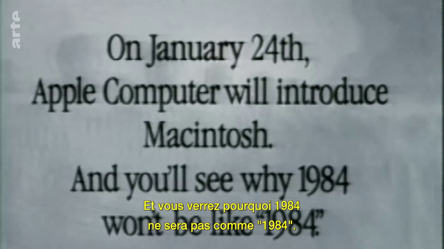 (6/7) ... Microsoft avec ordinateur Macintosh incompatible avec Microsoft vendu comme une révolution technologique/marketing (cf 1985) mais marché déjà structuré autour de Microsoft -> marque/image/mythe #psy -> #consommation.