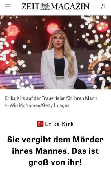 Was wagt ihr euch die Frau eines Rechtsradikalen wie #Kirk so zu bezeichnen, #zeitonline ?