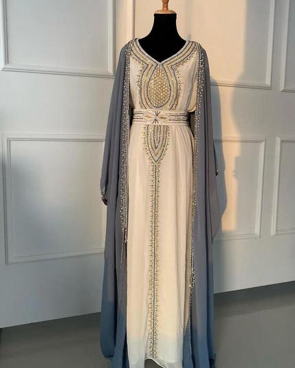 #ZariWorkKaftan #SkyBlueKaftan #WeddingStyle #PartyFashion #MoroccanKaftan #ShopNow