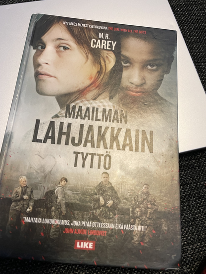 Luin tämän viime yönä, kun ei tullut uni silmään. Tänään katsoin leffaversiosta, että miltä ne lopun sienikasvustot näyttävät. Olihan ne elokuvassakin hienot, mutta omissa mielikuvissa ne olivat sumuisen toismaailmallisia ja kauheita ja se muutti kirjan lopun vielä hienommaksi. Se on sellainen hauntingly beautiful -loppu (varsinkin kirjassa). En ole sellaista ennen tavannut zombietarinoissa. Muuten oli mielestäni aika peruspulla. #kirjamastodon #girlwithallthegifts #mrcarey #zombi