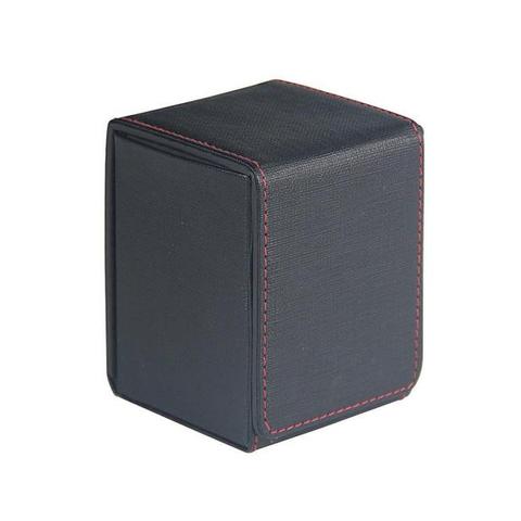 The deck box has a slick black vinyl texture with red stitching along its edges that gives the box its alluring elegant feel. There are strong magnets on the flap for secure storage, and two plastic dividers to keep your cards organized. The inside also has this sleek black for the matching aesthetic. It’s a nice looking box, but those looks fade fast.