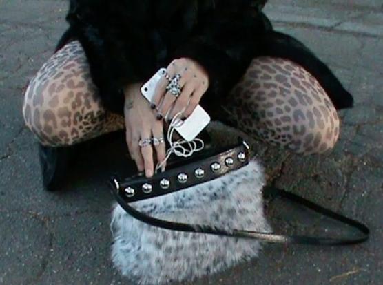 She wears a messenger bag. It contains the magic tome she studies and sometimes sleeps with, her notebook, quill, hair ties, some gold coins, and a six-inch ivory-handled jackknife. Razor-sharp, she won it when she'd tricked its former owner into running into a wall—and is very happy with her souvenir. After she ran away from home, she stopped wearing jewelry, unfortunately there's this stupid green and white jade antiqued-silver coronet she's sometimes forced to wear. "Blech!", her term. Beware which demon you sign a pact with.