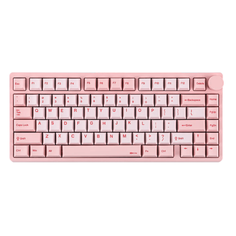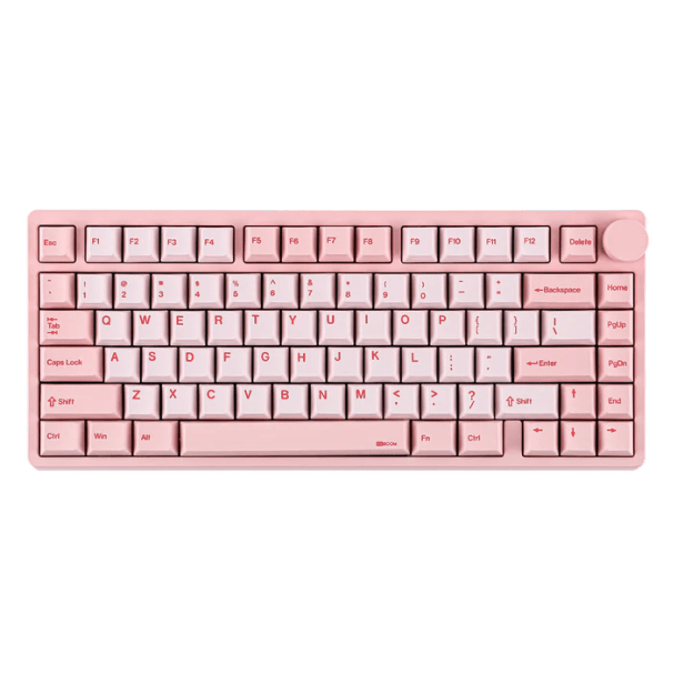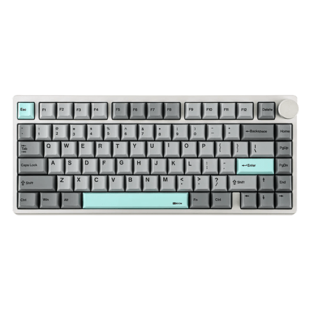 The KiiBoom Moonshadow V2 is a stylish 75% mechanical keyboard that is ready to upgrade your aesthetic. It well designed aluminum body gives it its durable construction and its weight will keep it from sliding across your table. The keyboard comes in black, pink, and silver. All schemes look great, but I chose the black because I liked the mascot on the escape and enter keys.