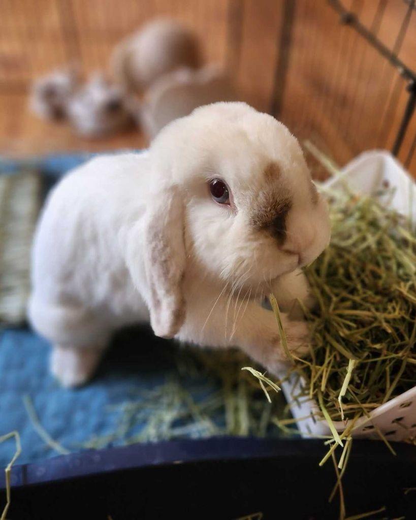 Happy adoption news to share! Trixie has a new home! She's settling in with her new family and enjoying her hay buffet. #Adopted #Celebrate #HouseRabbit #Congrats #AdoptDontShop #NewHome #TriangleRabbits