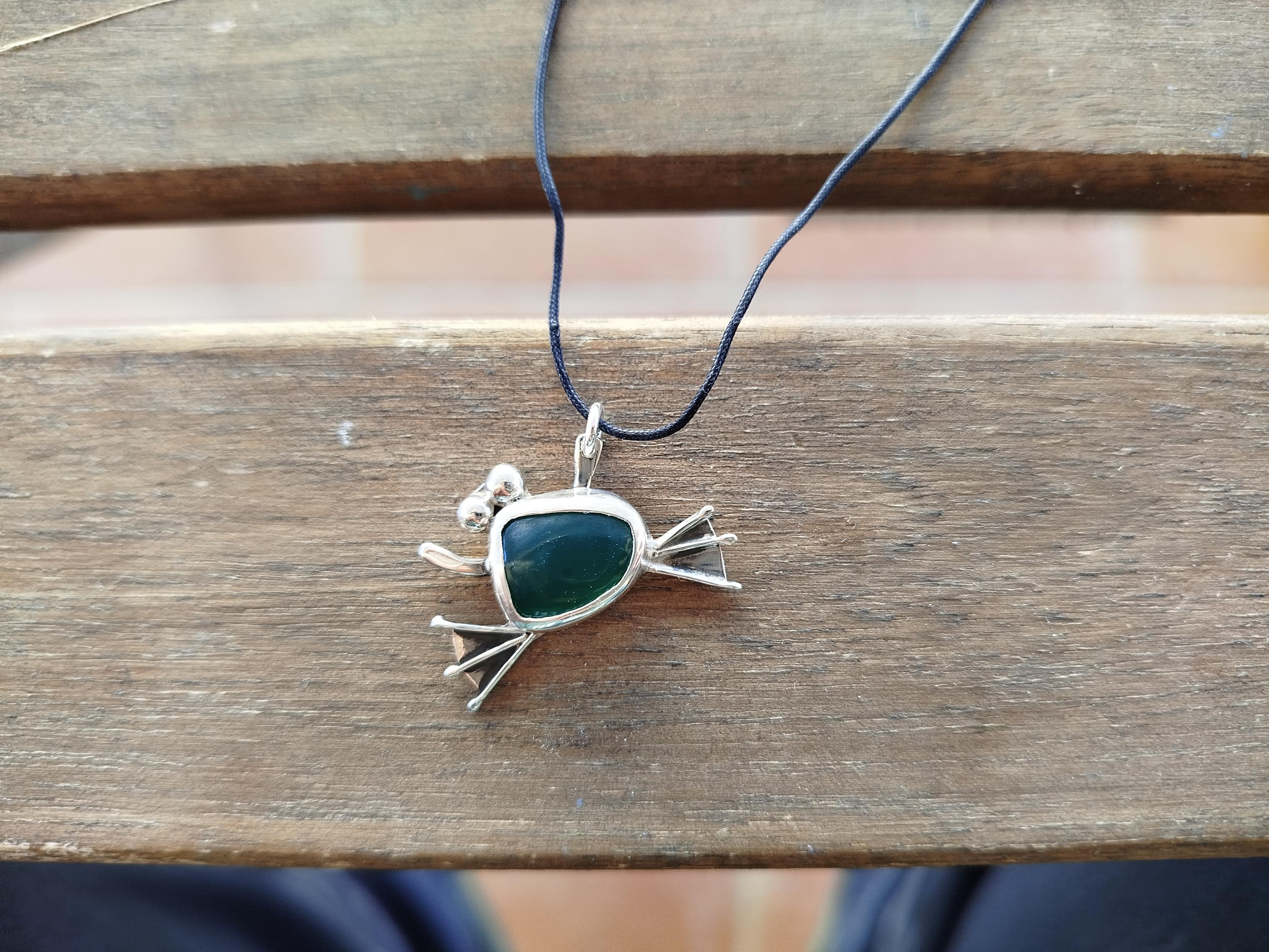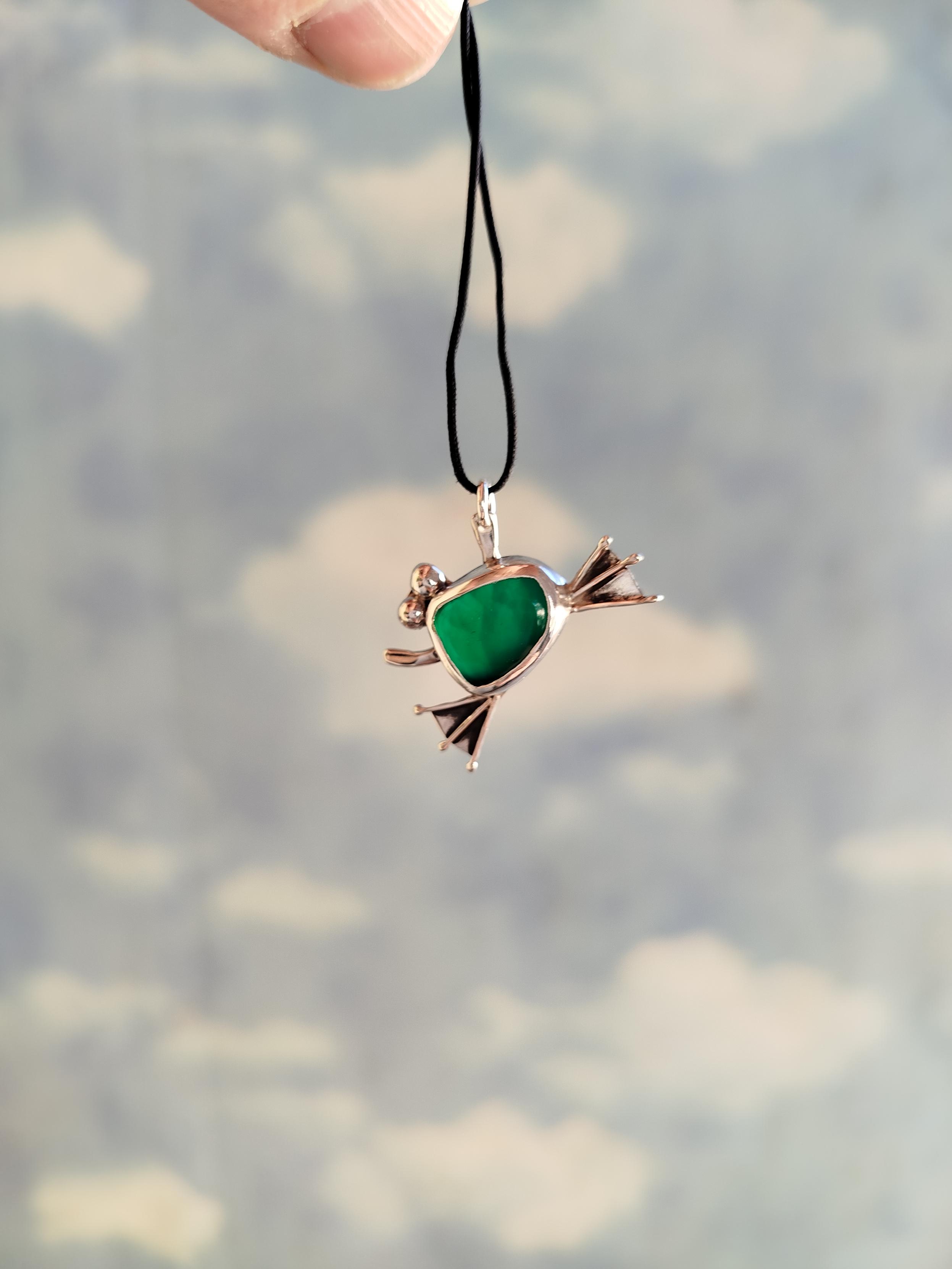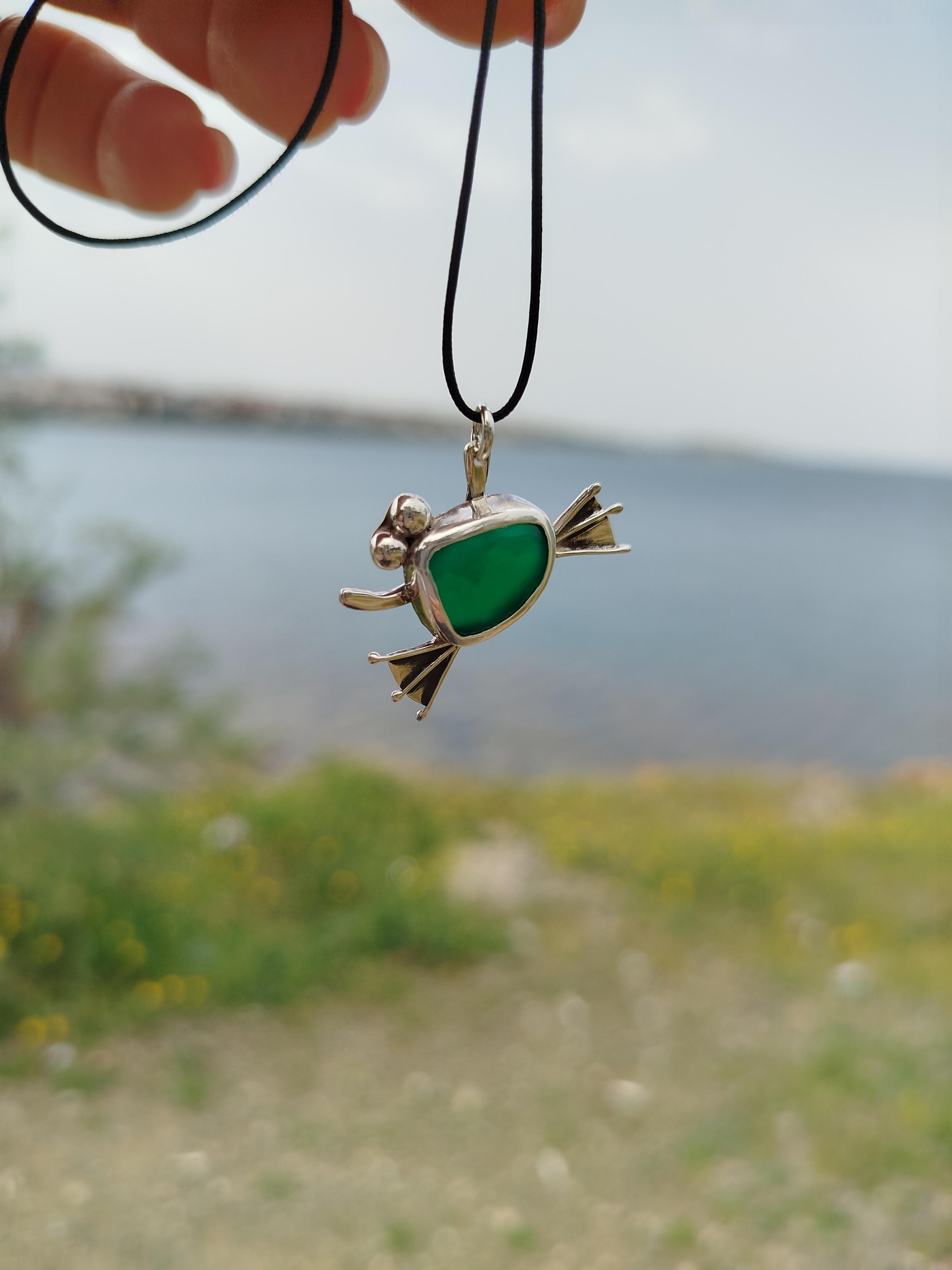 A #handmade #frog #pendant with green #agate made with #SterlingSilver. It's available with silver chain or durable nylon cord!