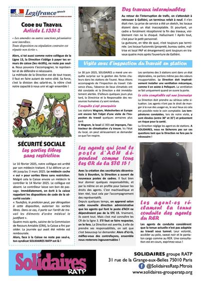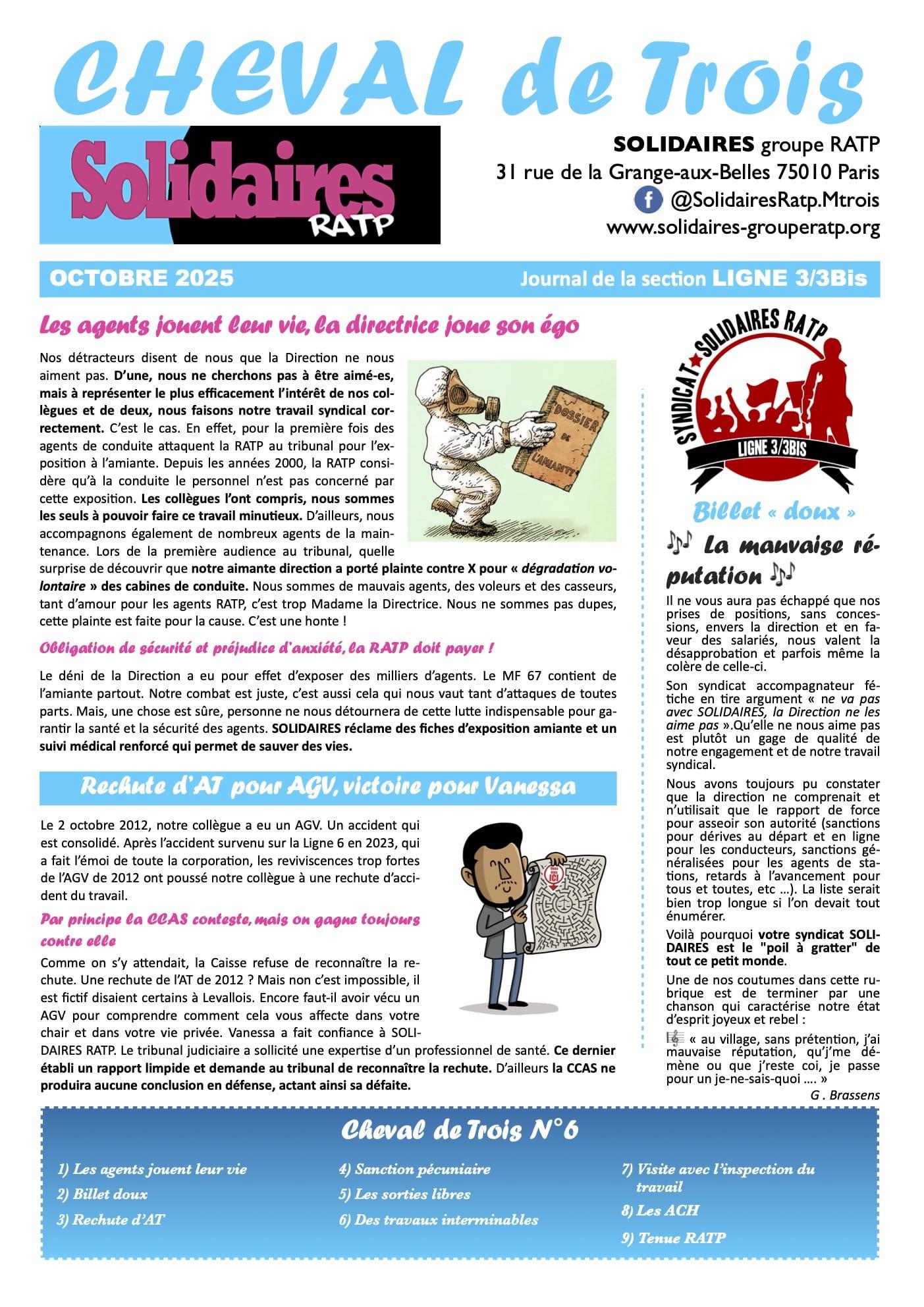 Le #JournalSyndical #ChevalDeTrois de la section Solidaires #Ligne3/3Bis #Metro #RATP #Amiante #AccidentGraveVoyageur #AT #CCAS et pleins de sujets #Conduite & #Stations