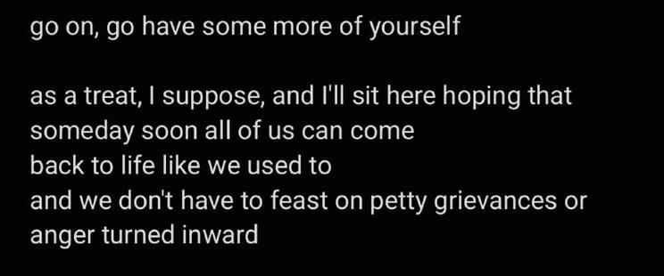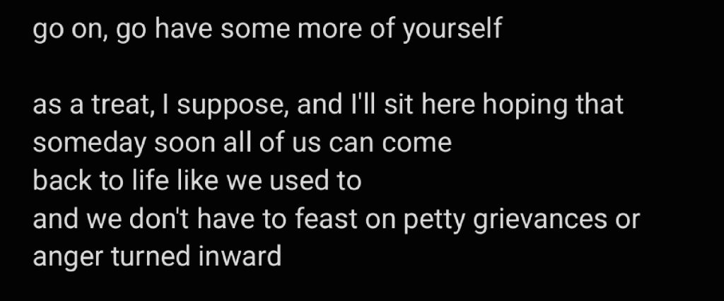 This piece is called “pound of flesh”. I wrote it using this tool I also made: https://opensorceryy.itch.io/infinite-poems-almost-infinite-combinations. -Allēna #poetry #queerpoet #transpoet #books #amwriting #amwritingpoetry #writingcommunity #readerswanted #writerswanted
