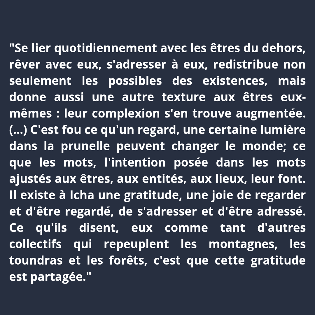 "Cette #philosophie de la re-liance nous rappelle que, face aux excès d’une #modernité qui coupe l’être humain de son milieu ambiant et nous conduit à une #CatastropheEcologique, existent des #vivants qui vivent sans nous et des processus bio-chimio-physiques qui nous dépassent."