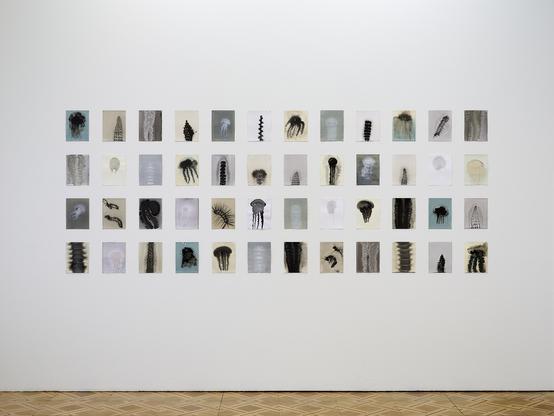 La série reflète aussi mon intérêt pour les components visuelles ou sensorielles des processus de recherche ainsi que pour l'histoire des sciences naturelles. Le titre fait référence au livre du même nom « ON GROWTH AND FORM » du biologiste mathématicien D'Arcy Wentworth Thompson (1860-1948), et la recherche sur les propriétés physiques des matériaux de peinture renvoie à « Der Bildunsgtrieb der Stoffe » de Friedlieb Ferdinand Runge.
