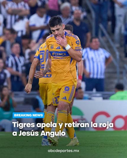 Tigres apeló con éxito la expulsión de Jesús Angulo, y la Comisión Disciplinaria decidió retirar la tarjeta roja mostrada en el Clásico Regio 141.