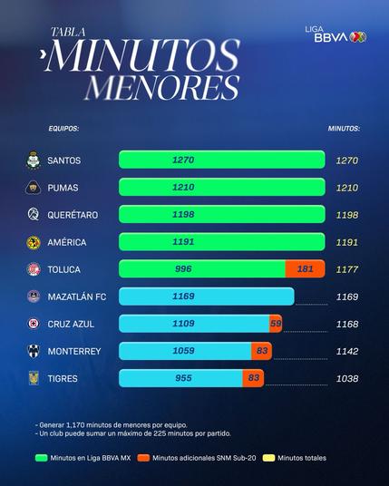 Esta es la tabla de #MinutosDeMenores actualizada, luego de 16 jornadas. 📊