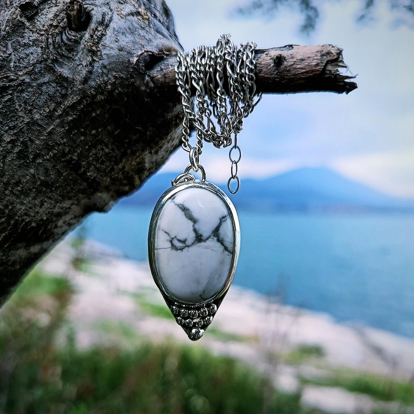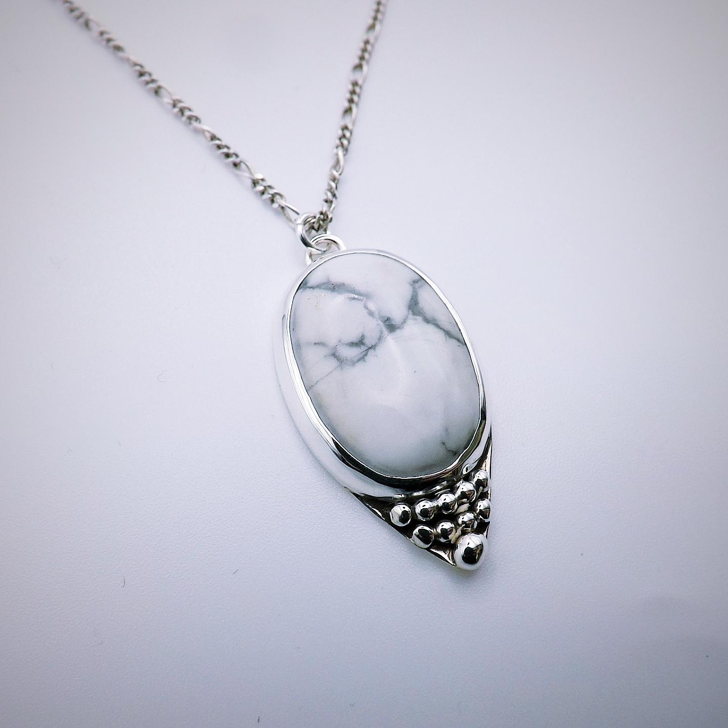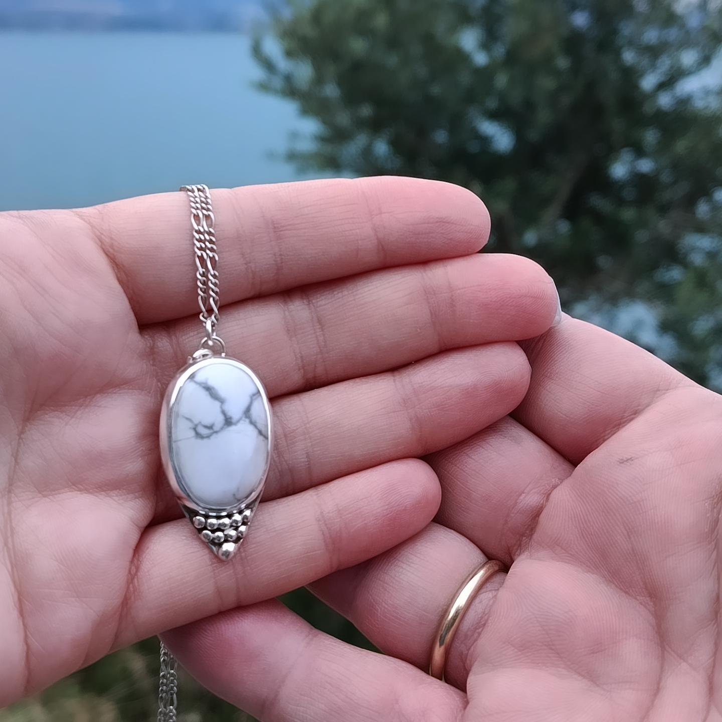 A #handmade #pendant with an oval white #Howlite made with #SterlingSilver. A perfect #gift for a beloved person or yourself! It's available with silver chain or durable nylon cord.