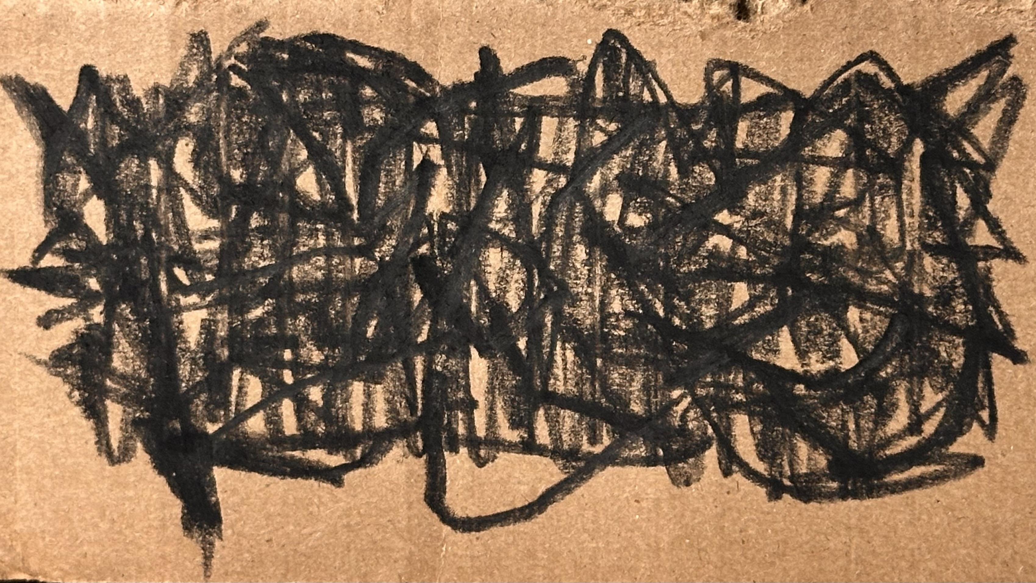 sort of inordinately pleased with this quick little abstract #sketch - charcoal pencil on a piece of cardboard box lid #abstractArt #originalArt #artistsOfMastodon