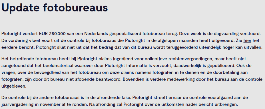 Ben bezig met bronnenlijst voor mijn boek en zocht artikel over de boete van 120.000 euro voor een fotobureau. Blijkt die boete verhoogd te zijn...