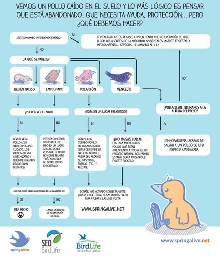 Por suerte resulta que hay un centro de recuperación de aves a 15 km y lo he llevado. En el 112 me han informado sin problema ninguno.