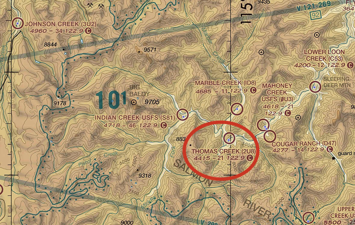 Ended my day at Thomas Creek airstrip (2U8). I was expecting an actual airstrip, but instead it is just a flat meadow with a couple of wind socks.