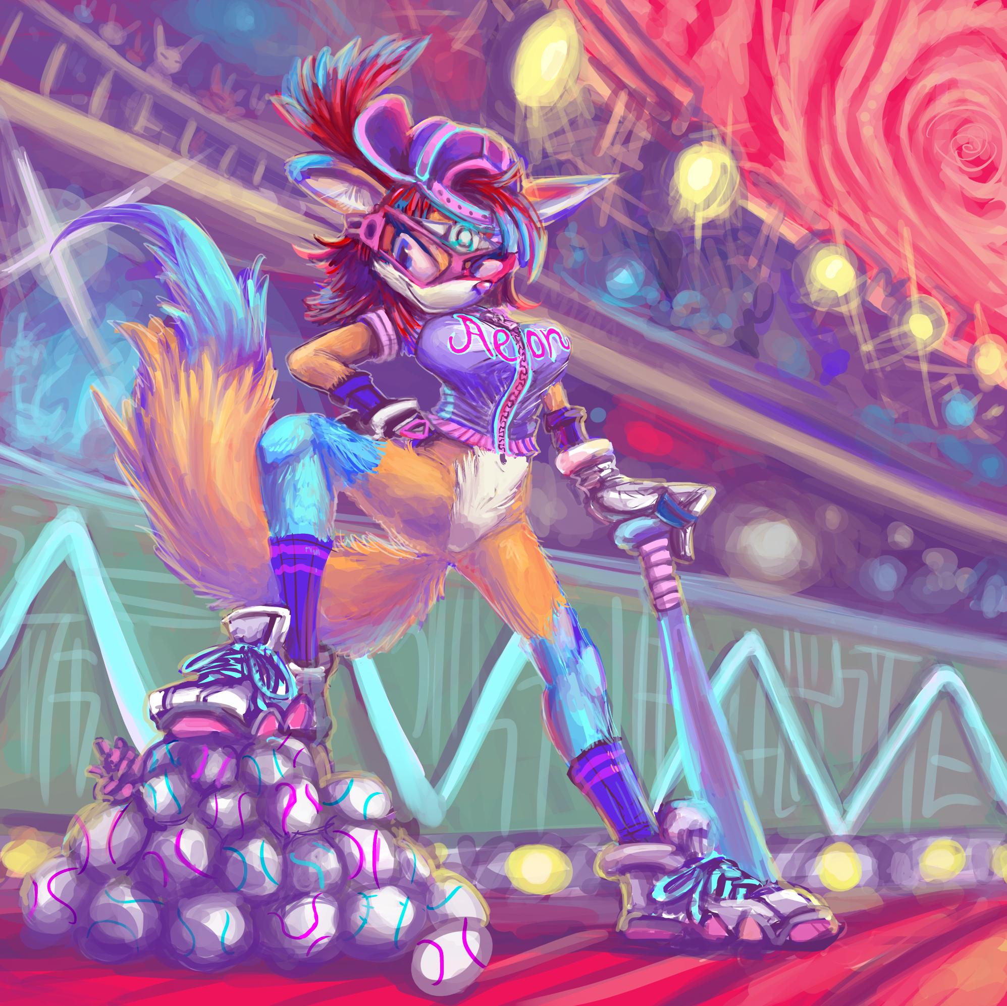 #respelia #neon #mastoart #sport #pose #anthropomorphic #anthropomorphicart #foxgirl #foxanthro #anthrofox #furryart #furry #baseball #baseballgirl #goggles