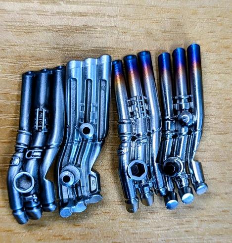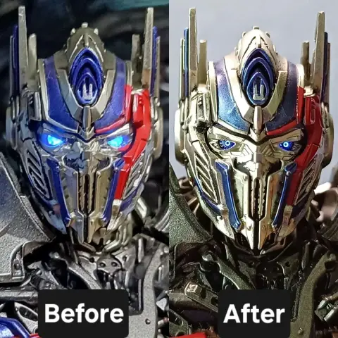Saw these upgraded smokestacks for Yolopark TLK Optimus and felt like having them. They're chrome painted and have a nice burn fade. Also the actual sculpt separates each stack a bit nicer. Not a huge change but I like it. 🙂