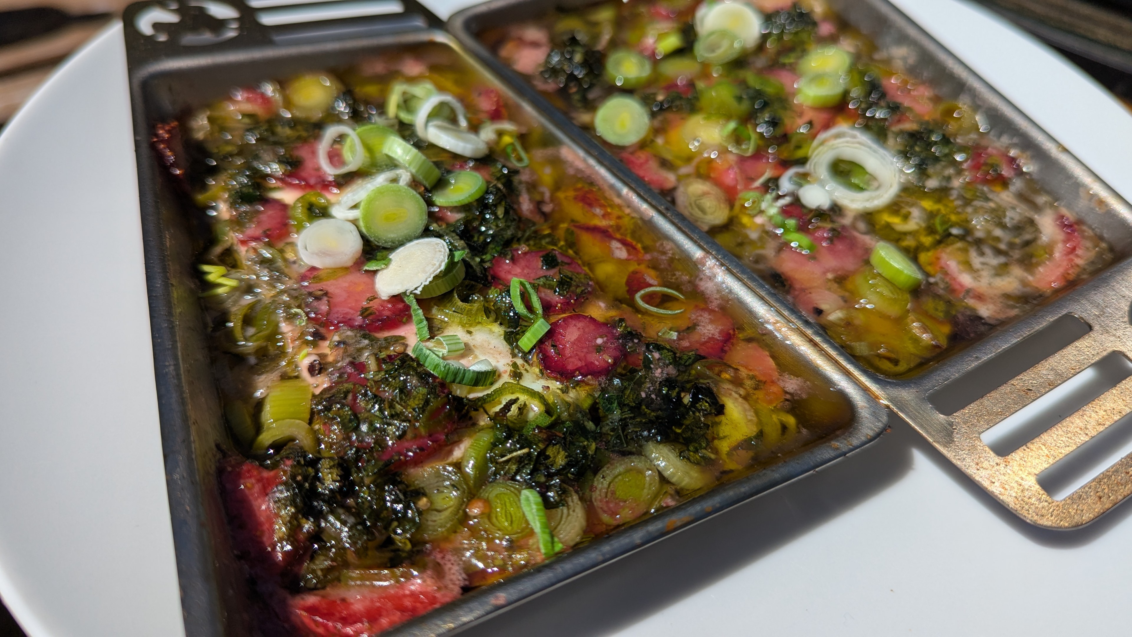 Und das fertige Ergebnis. Hab die Taschen und Spieße in eine Auflaufform umgezogen, sie haben sich aufgelöst und sind ausgelaufen.