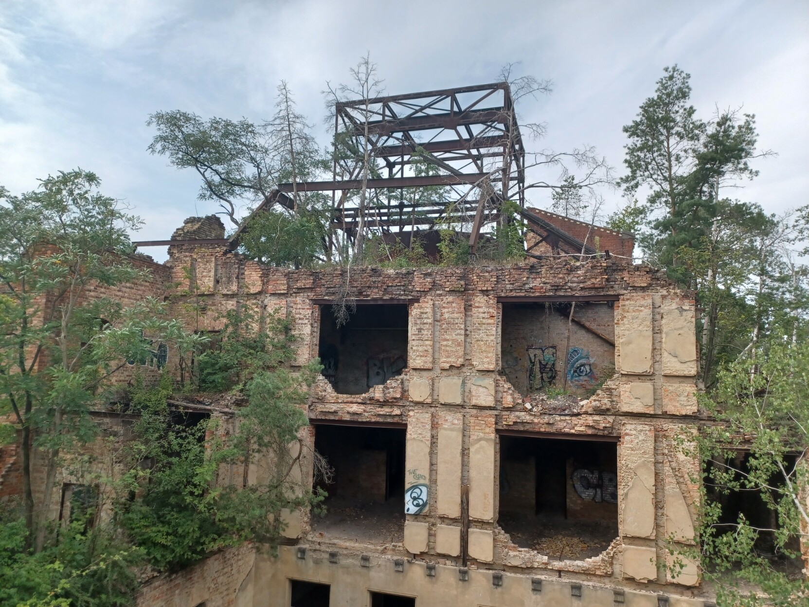 Kein wirklicher lostplace, sondern eher betreutes Zerfallen beim Baumpfad in Beelitz-Heilstätten.