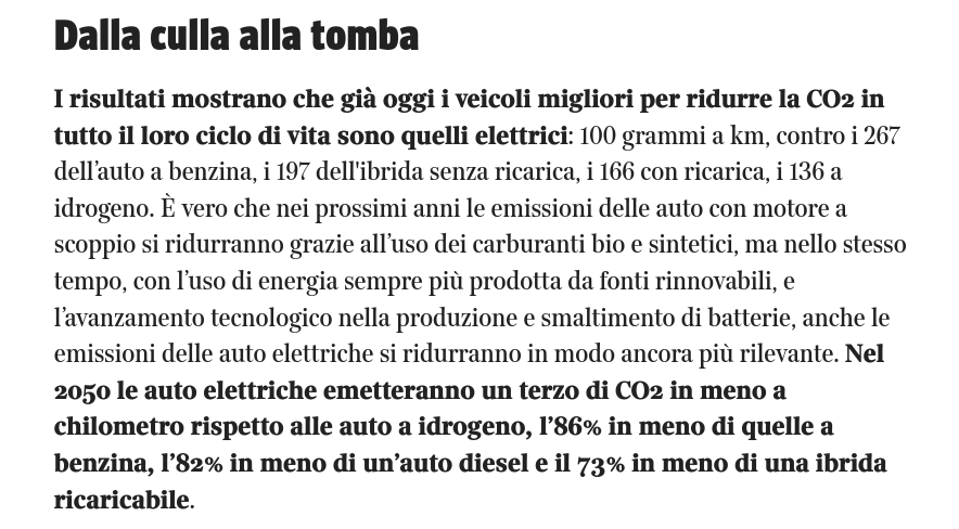 Per una volta (perché spesso in passato ho trovato inesattezze nei suoi #dataroom) sono d'accordo con #MilenaGabanelli che dedica un approfondimento dicendo le cose come stanno: inutile continuare a parlare di idrogeno, biocombustibili, che le batterie inquinano...