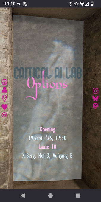 Gerade ist Critical AI Lab in der Lause 10, 10999 Berlin, bis 27. tägl. 14-18h. Wir freuen uns auf Euch.
