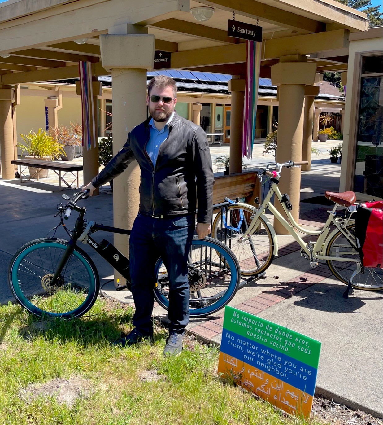 Great way to start the #NewYear: being approached with #BikeAdvocacy questions on the courtyard after #church last Sunday (at #solar-powered First Presbyterian Church of #Montereyโwhich has #BicycleParking by the sanctuary's front door).