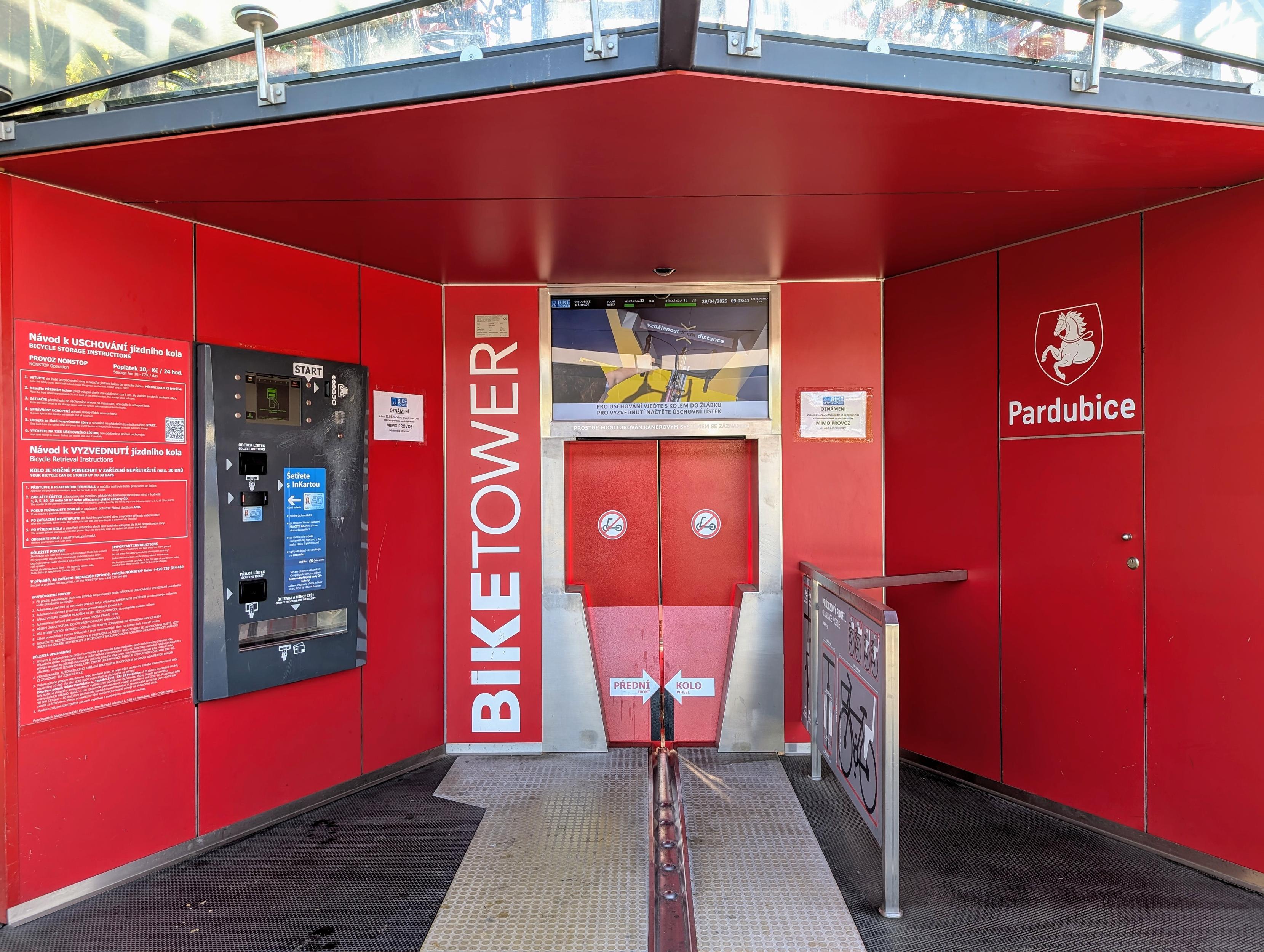 I am always amused watching people parking bicycles in the bicycle towers (cyklovฤลพ) scattered around Czech Republic. It seems that it tooks less than 15 seconds to park the bicycle! This one is in Pardubice.