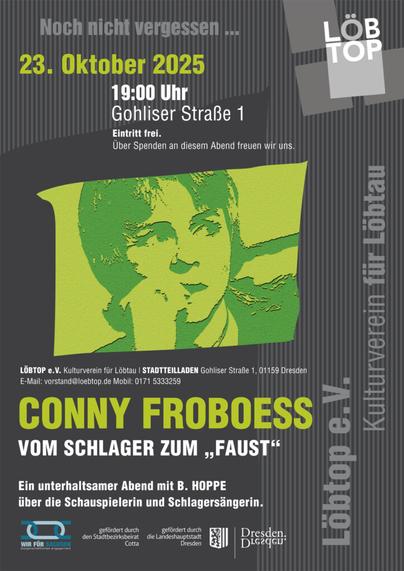 19:00 Uhr | Conny Froboess: vom Schlager zum “Faust”. Herzliche Einladung in den Stadtteilladen.
