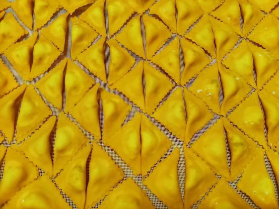Triangoli ripieni di ricotta e speck.