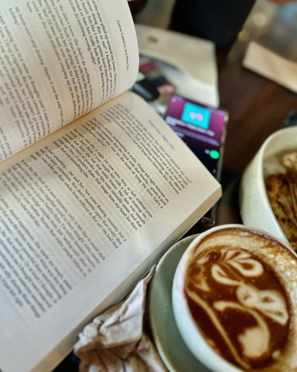 I feel like Sara, our protagonist in the novel #GnightSaraNightHeck, with a book, a Spotify reading playlist, pens, notes, and #brinner—a term coined by Heck that means breakfast food for dinner.