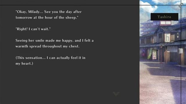 That said, I kept getting a serious sense of deja vu while playing this route because it felt a lot like Steam Prison’s Yune’s route/character. Narukami is an automaton powered by some kind of scarlet gold alloy as his heart. Similar to Yune, who has a gem artifact for a heart that grants him immortality, Narukami’s situation also felt kinda familiar in concept.