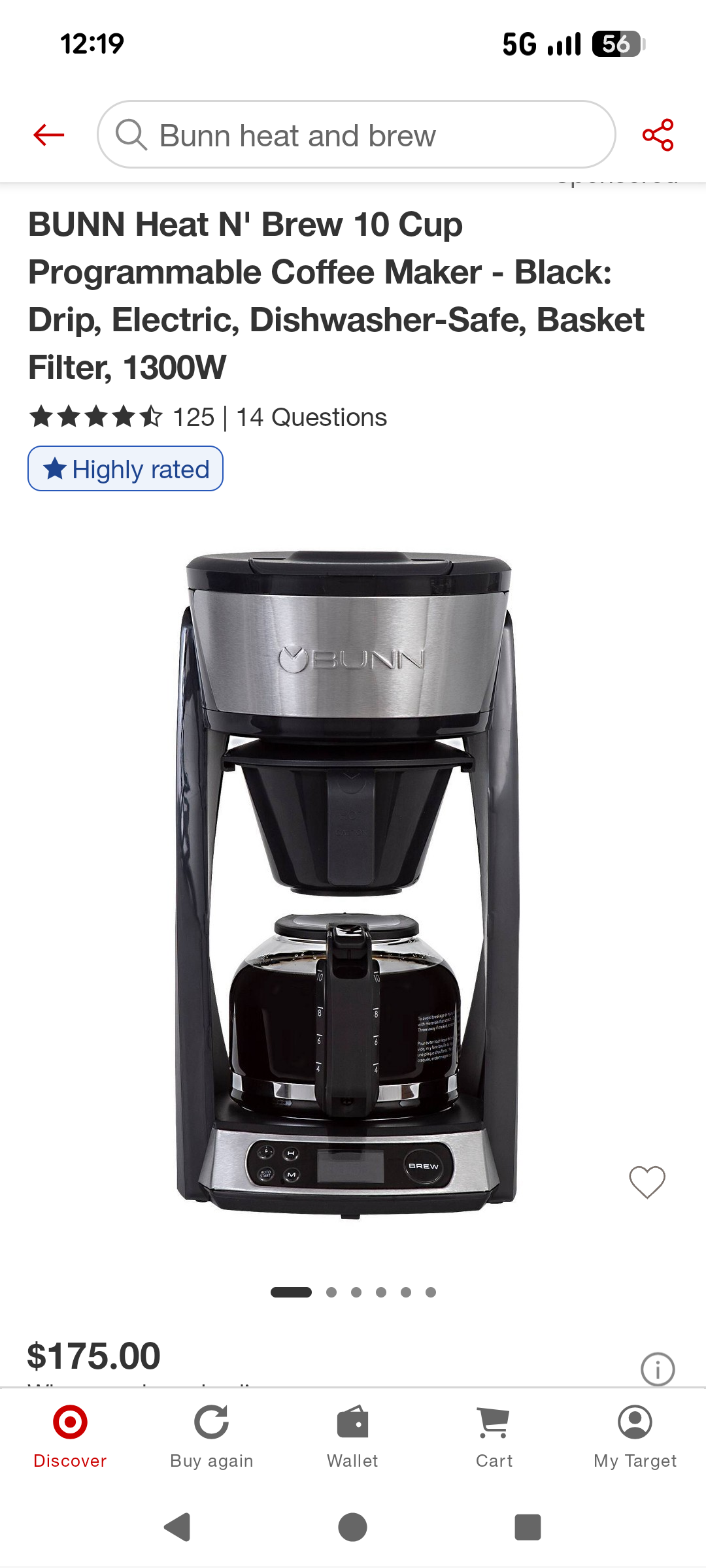 I thought I might want to try this fancy Bunn automatic drip coffee maker but not for $175.