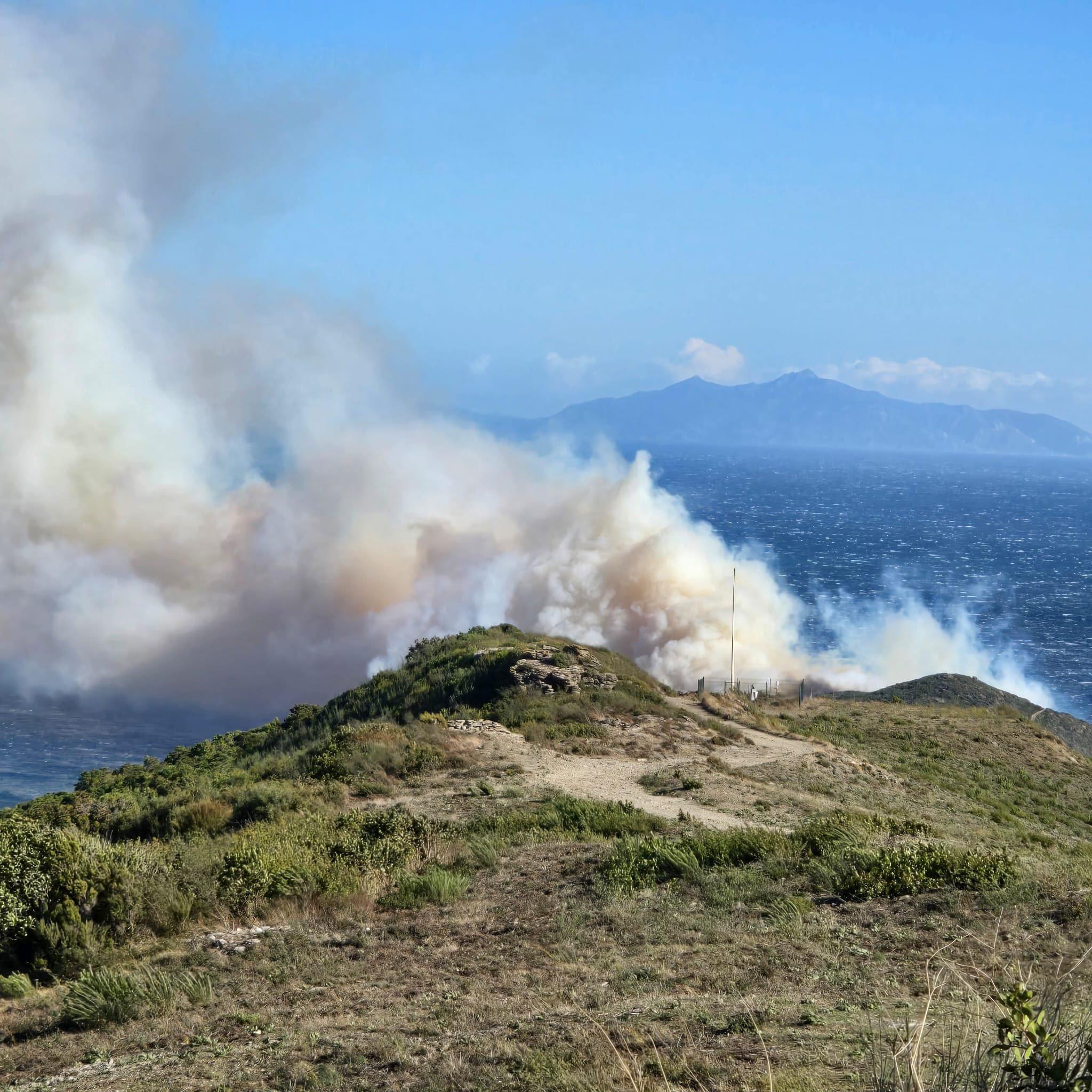 🔥 Un important #incendie est en cours à #Cagnano dans le #CapCorse. Il est attisé par un vent tempétueux avec des rafales à plus de 150 km/h mesurées par la station située tout près du feu ! 💨(photo SIS 2B - Cismonte)