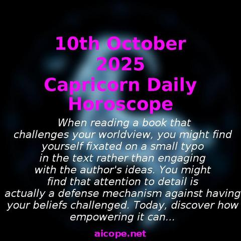 Dear Capricorn, Your daily horoscope for October 10th is available! Visit https://www.aicope.net/daily-horoscope/capricorn to read it.