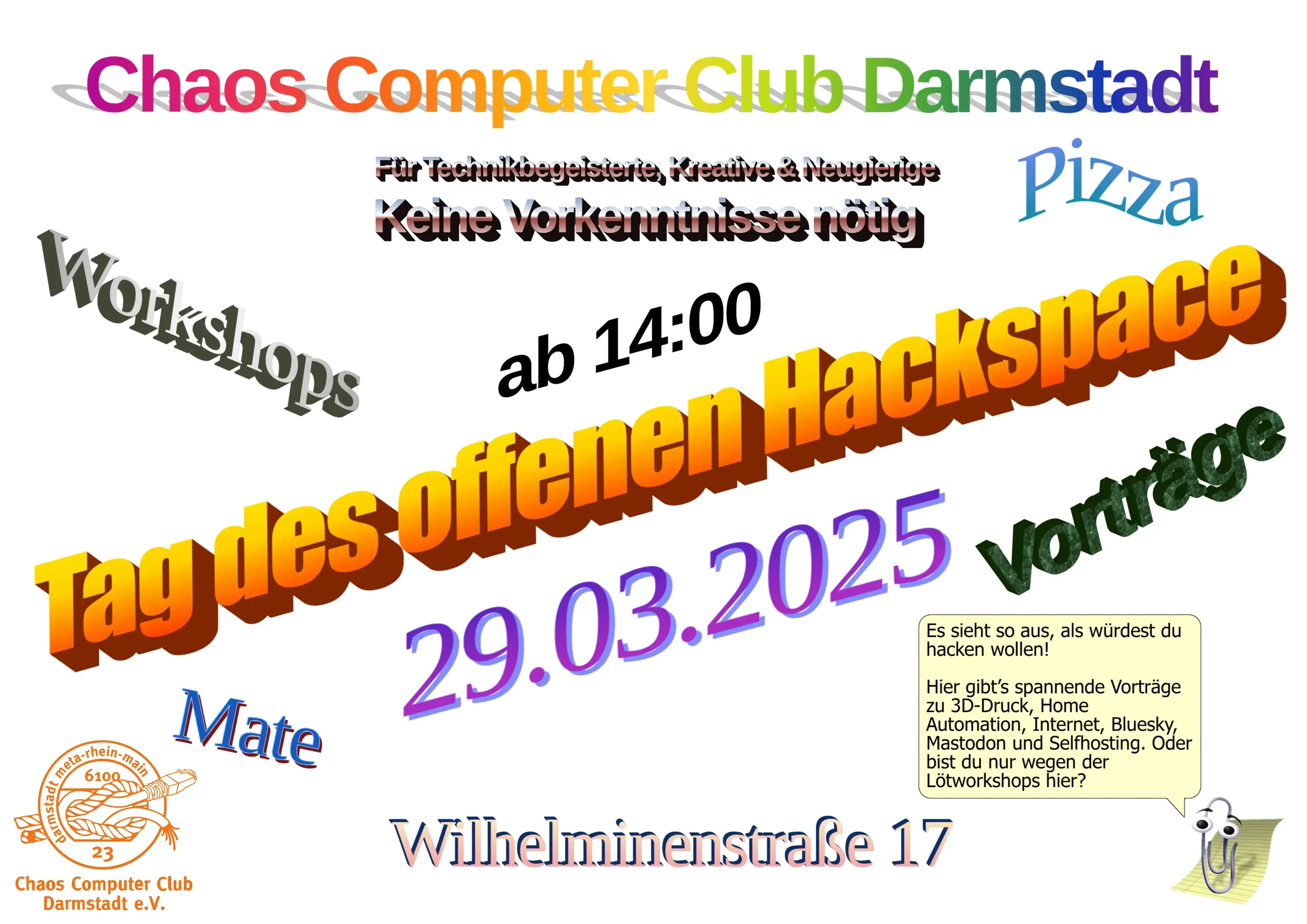 Mehr Infos: https://www.chaos-darmstadt.de/2025/tag-des-offenen-hackspace-2025